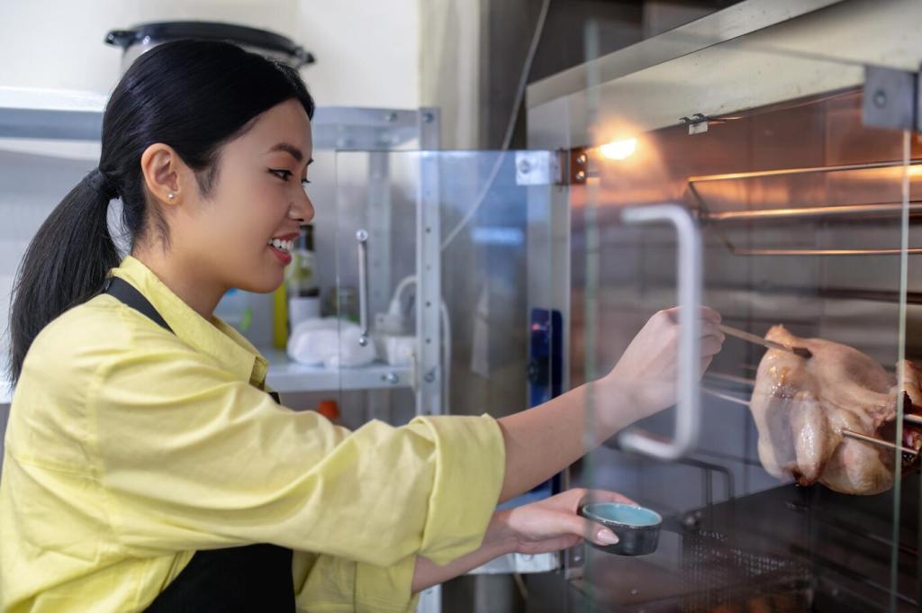 Vermeiden Sie Säuren auf kalkhaltigen Steinen. Arbeiten Sie mit neutralem pH, weichen Tüchern und sanftem Druck. In einem Loftprojekt rettete das sofortige Abtupfen eines verschütteten Espressos die Imprägnierung. Haben Sie ähnliche Anekdoten? Erzählen Sie uns Ihre Lösungen.